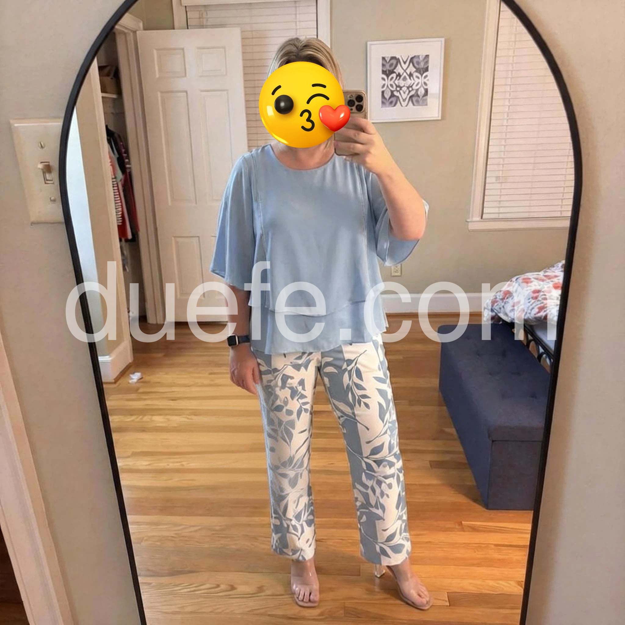This Blue 3/4 Sleeve Two Piece Set offers a versatile and stylish clothing option. With its flattering 3/4 length sleeves and two-piece design, it is perfect for any occasion. Made with quality materials, it provides comfort and durability. Elevate your wardrobe with this must-have set.