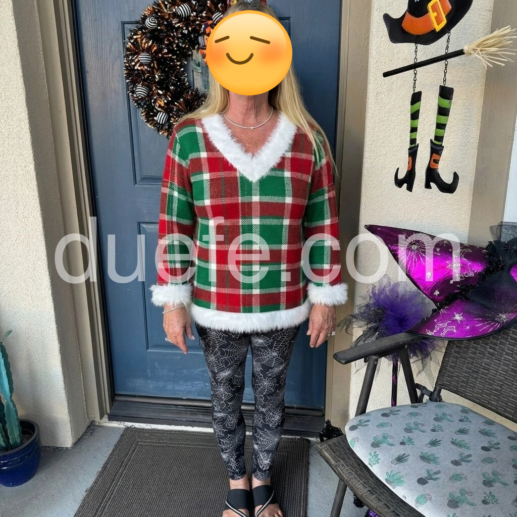 Celebrate the season in style with this Festive Green Plaid Christmas Top, featuring a classic plaid pattern enhanced by a luxurious faux fur trim. Crafted for both comfort and festive appeal, this top provides a cozy fit perfect for holiday gatherings. Its timeless design pairs effortlessly with your favorite winter accessories, making it an expert choice for those seeking understated elegance with seasonal charm.