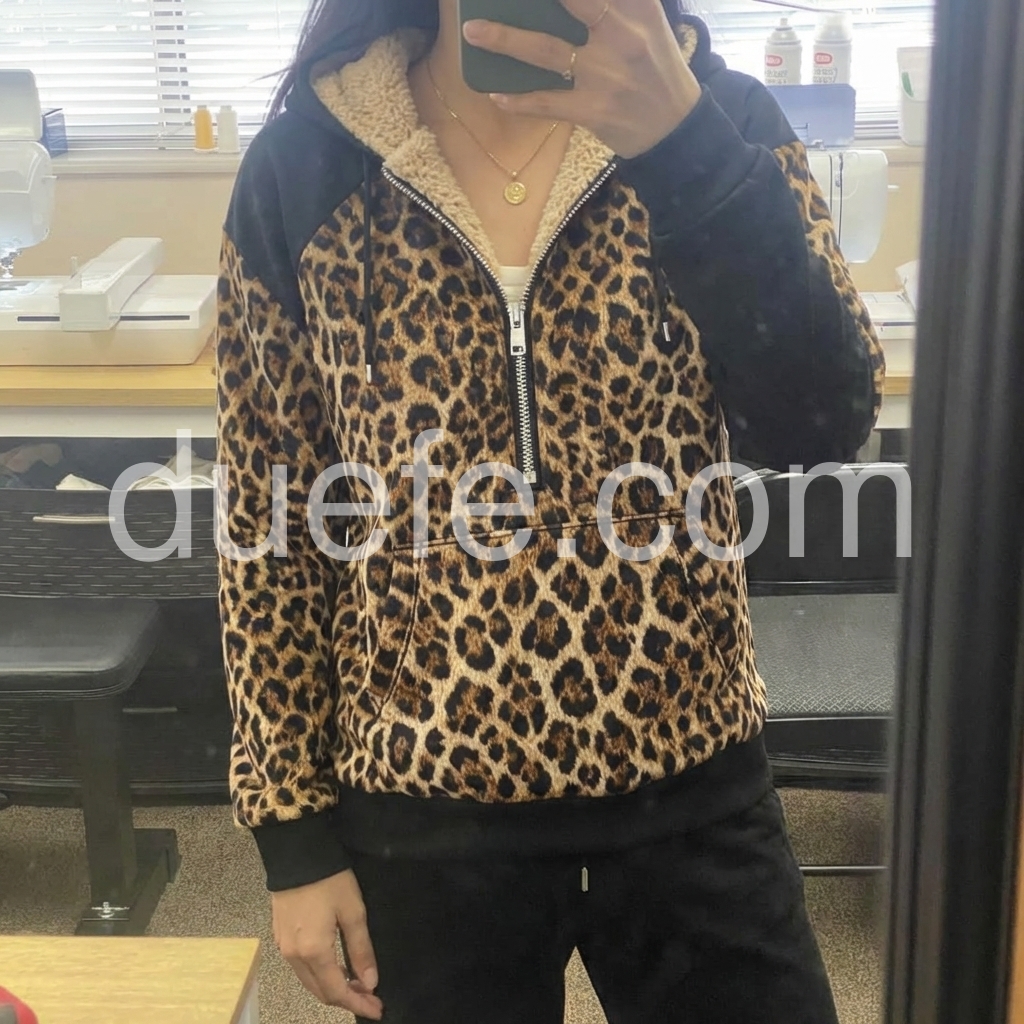 Make a statement with this striking leopard print sweatshirt, designed for those who embrace bold fashion choices. The soft fuzzy lining provides exceptional comfort and warmth, perfect for layering or wearing solo during cooler months. The classic leopard pattern adds timeless appeal to your casual wardrobe, while the relaxed fit ensures all-day wearability. Whether you're running errands or meeting friends, this versatile piece transitions effortlessly from day to night. Durable construction means it'll remain a go-to favorite season after season.