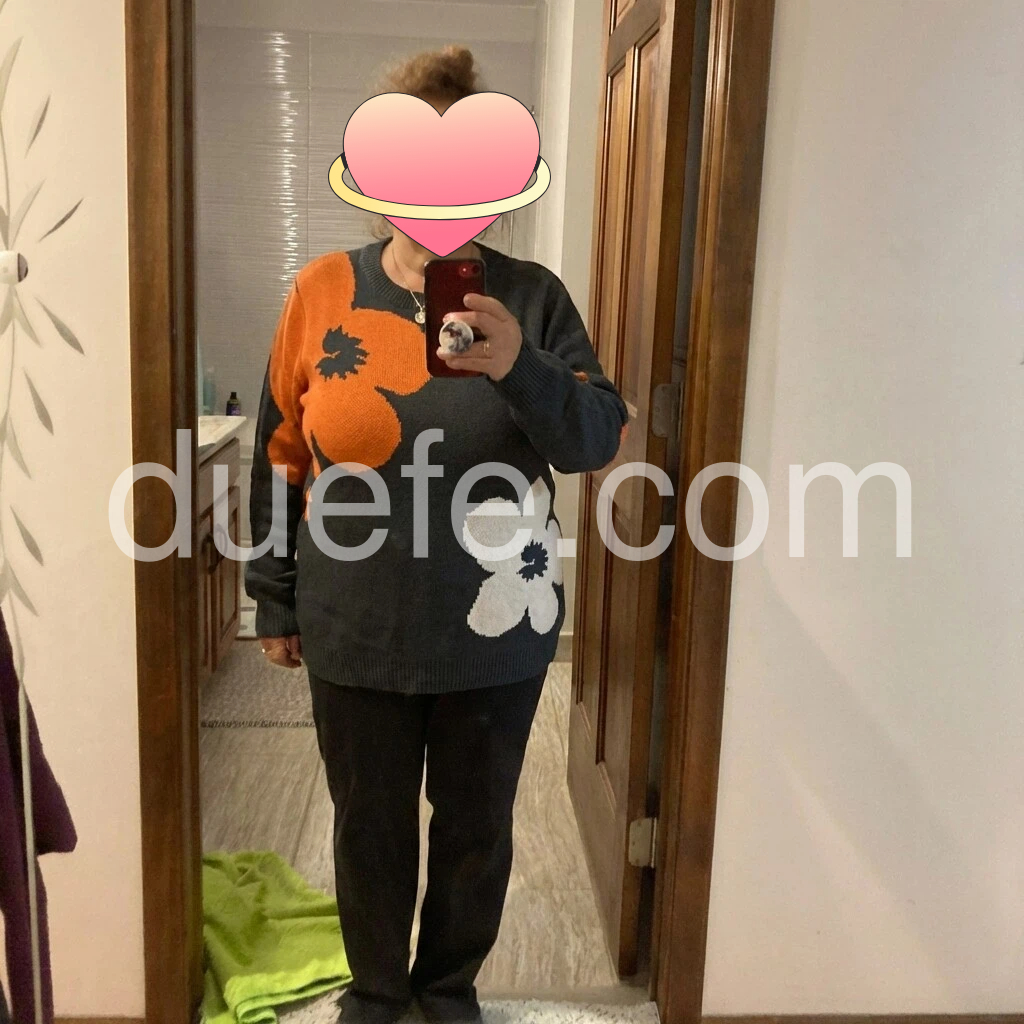 I love this sweater! The colors are fun and festive especially the bright orange animal design against the dark background. The knit looks soft and comfortable, and it fits nicely without feeling stiff. The crew neck sits well and the length is flattering. I’ve worn it casually and it still looks really put-together because the print is so eye-catching. It matches the listing photos well and feels like good quality.