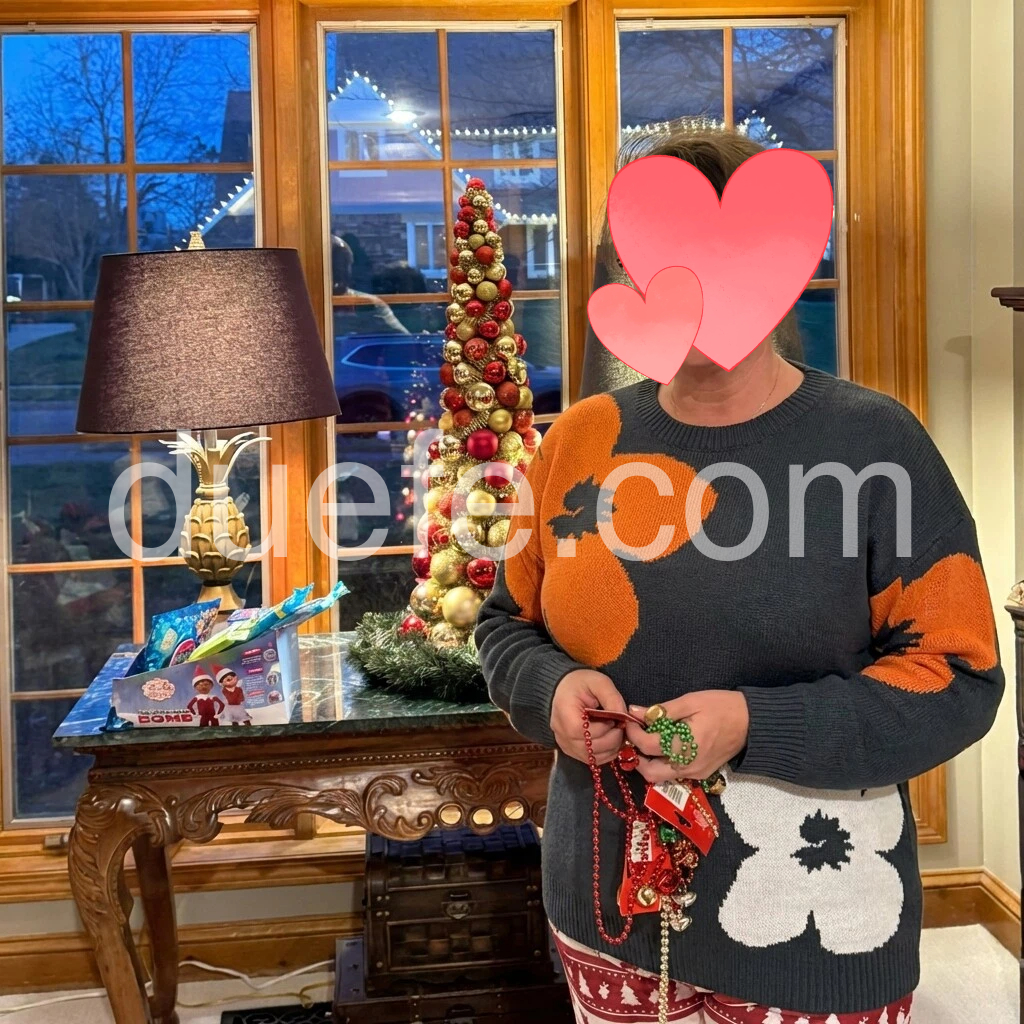 This is such a cute sweater. The fabric feels warm and cozy for cold weather, and the fit looks flattering through the shoulders and body. I’ve worn it during the holidays and received compliments right away. Definitely a great purchase and exactly as shown.