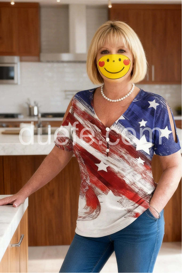 Super cute and good quality! I am 125lbs, 5’2 and wear a 34D and I ordered the small. I don’t like my stuff tight but also don’t want it too oversized. This fit perfect. The flag design is vibrant and stylish – I've already gotten so many compliments! 🇺🇸💖😊