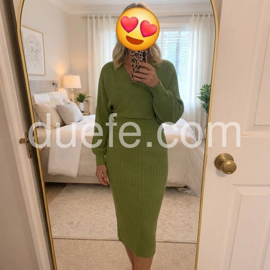 Upgrade your winter wardrobe with our Green Long Sleeve Plain Midi Sweater Dress. The stylish midi length and comfortable long sleeves make it perfect for any occasion. Stay warm and fashionable with this versatile piece.